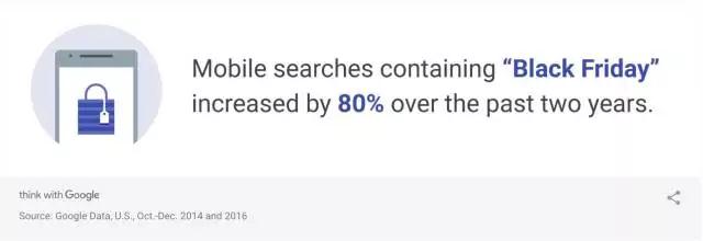 例如,在过去两年里,移动端包含“黑色星期五”的搜索量(如“黑色星期五是什么时候”、“黑色星期五最强促销”等关键字)增长了 80%。
